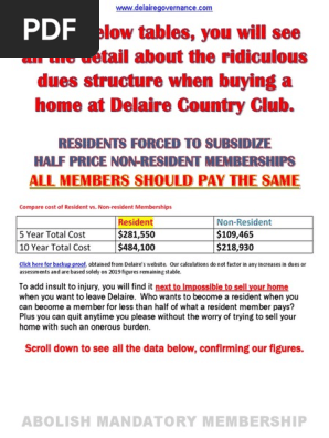 Now is the time to. RESIDENT EQUITY MEMBERSHIP Resident Equity Membership fees are mandatory for all Delaire property owners. The original charter established the club for the.